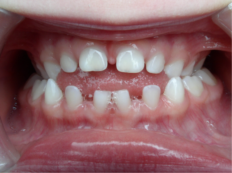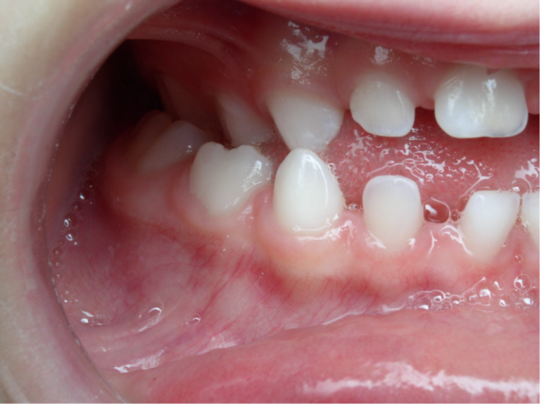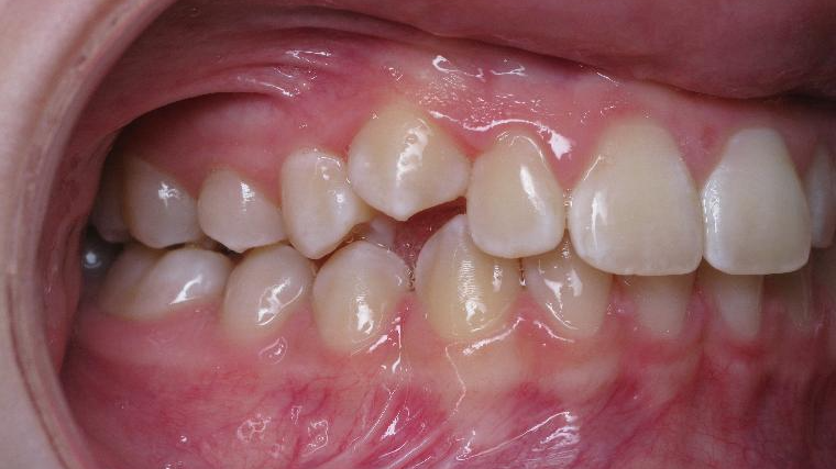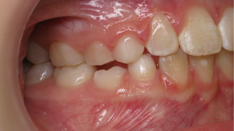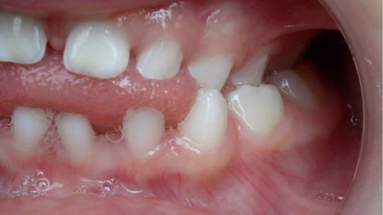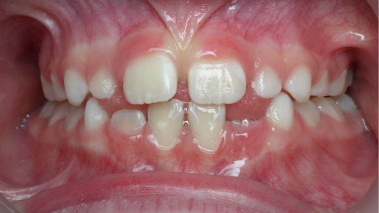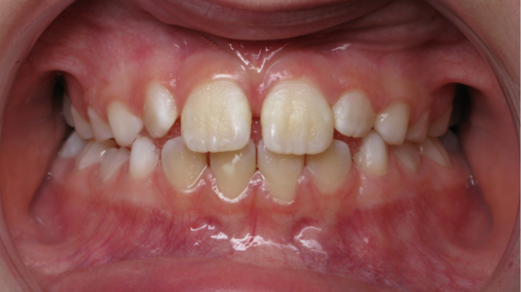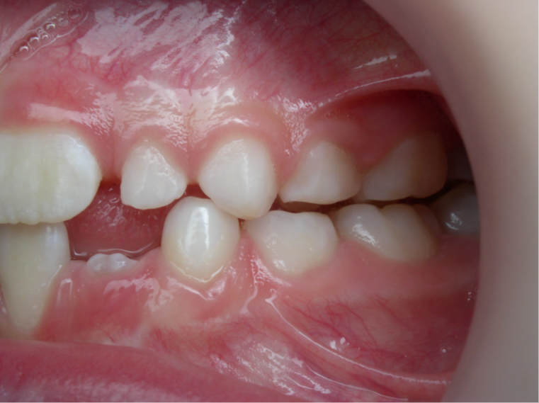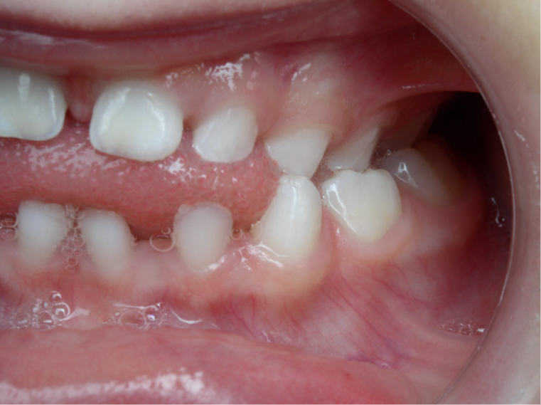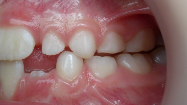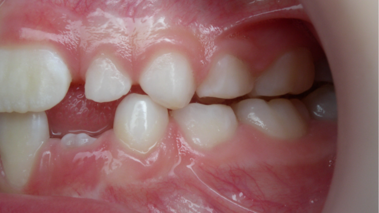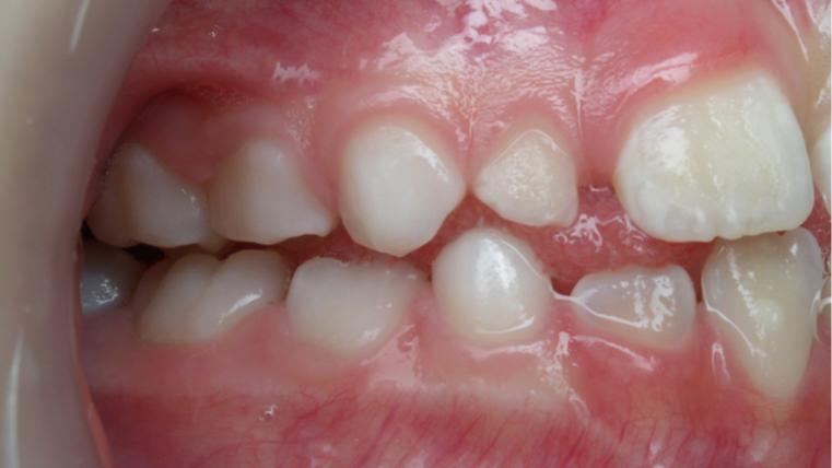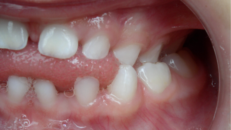 espace entre l'arcade du haut et du bas (béance) et dents du bas en avant par rapport à celle du haut