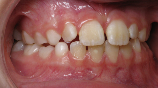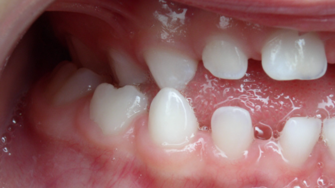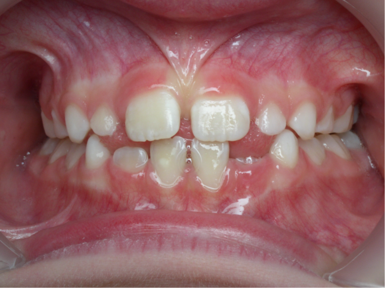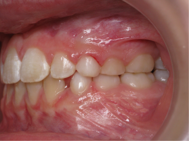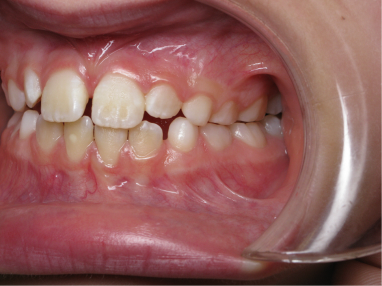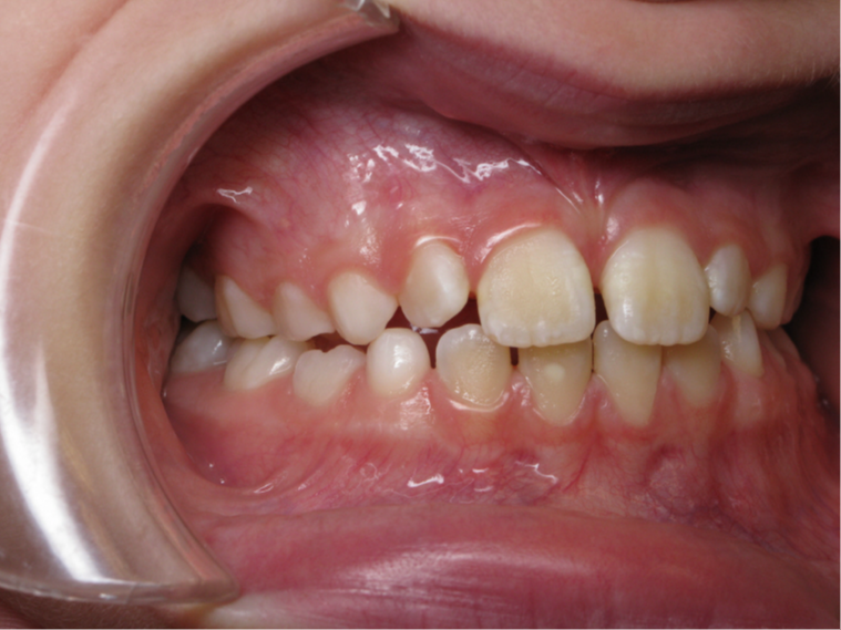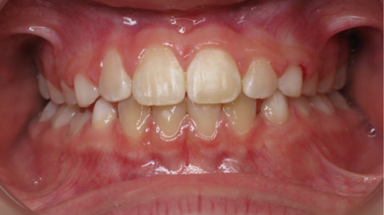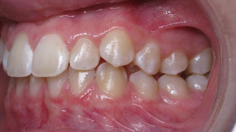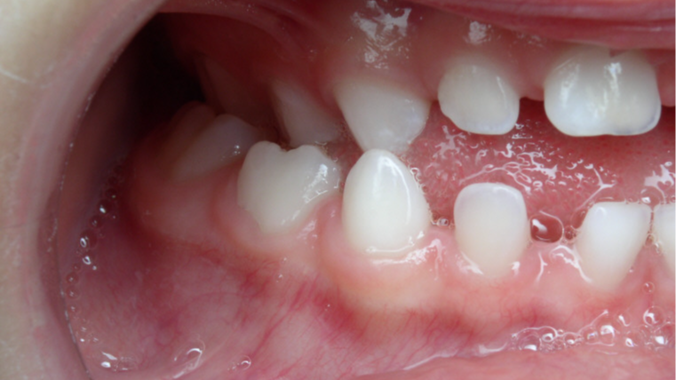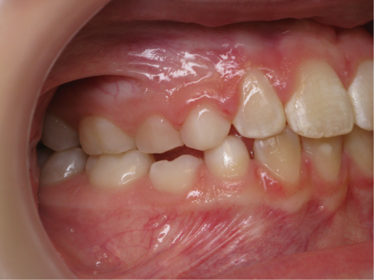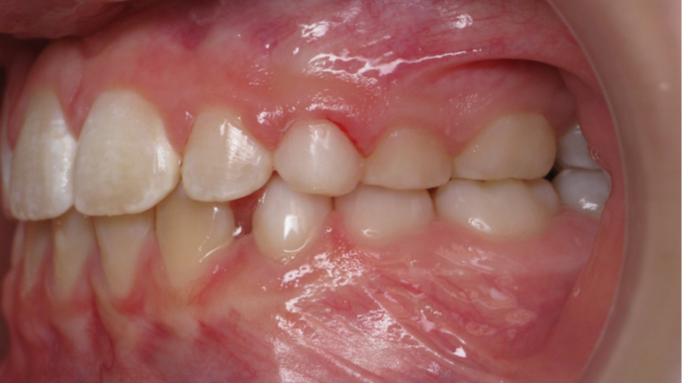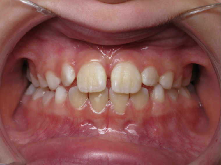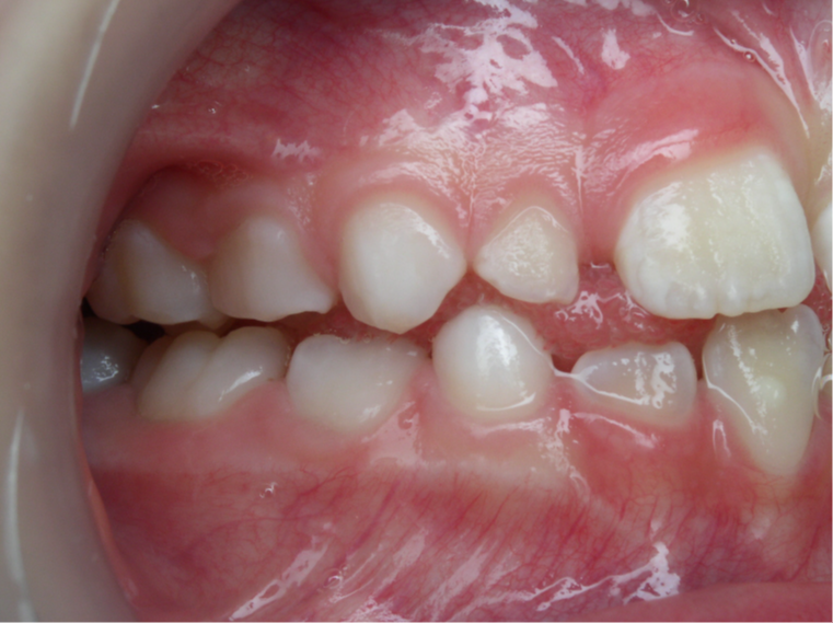 espace entre l'arcade du haut et du bas (béance) et dents du bas en avant par rapport à celle du haut